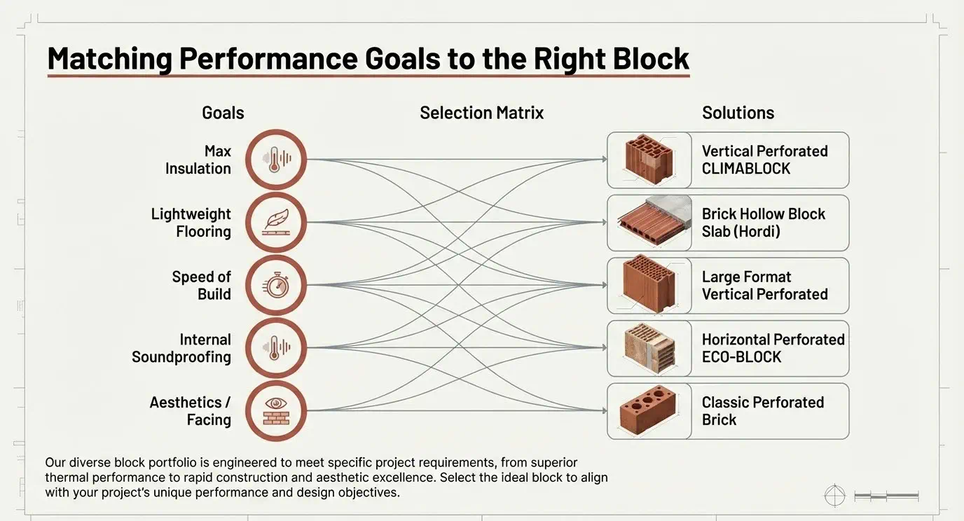 Horizontal Perforated & ECO-BLOCKS: Optimized for lightweight internal dividers with enhanced acoustic and thermal properties.