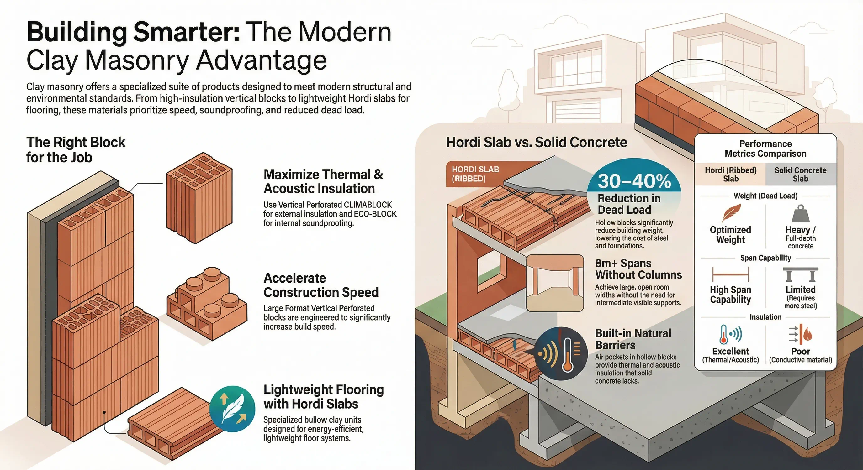 Hollow Block Slabs (Hordi): Specialized units for energy-efficient and lightweight floor systems.