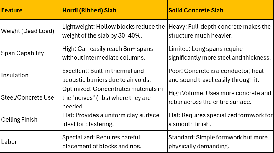Technical Comparison: Hordi Slab vs. Solid Concrete Slab